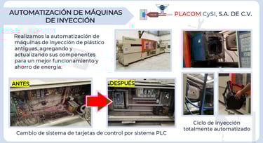 En Placomcysi, somos líderes en automatización de máquinas de inyección en México, ofreciendo soluciones innovadoras para optimizar la producción y mejorar la eficiencia de nuestros clientes.