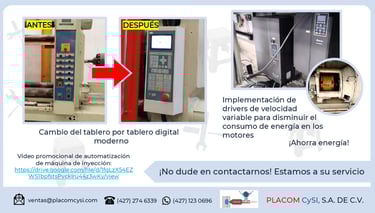 Realizamos la Automatización de Maquinas de Inyección Antiguas, Agregando y Actualizando los Componentes para un mejor Funcionamiento y Ahorro de Energía.